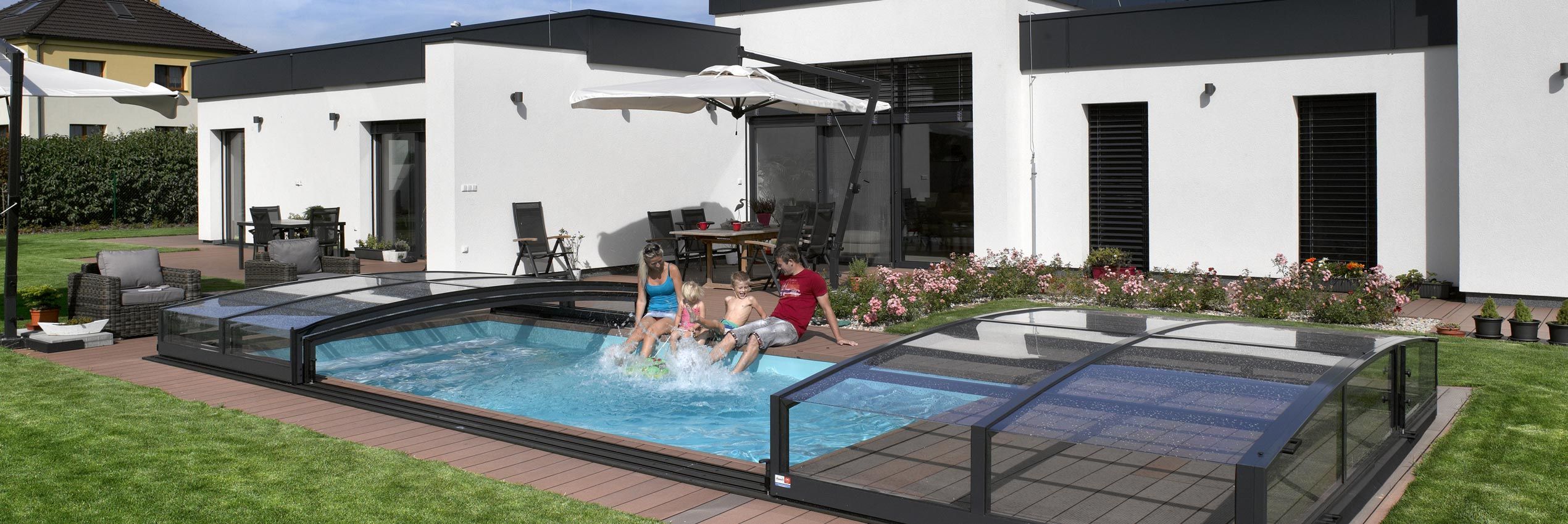 在任何天氣下使用您的露臺或游泳池,在天氣炎熱的時候,可以打開移動泳池蓋。寒冷和雨水的侵襲時可以關閉它,以保護自己免受影響。
